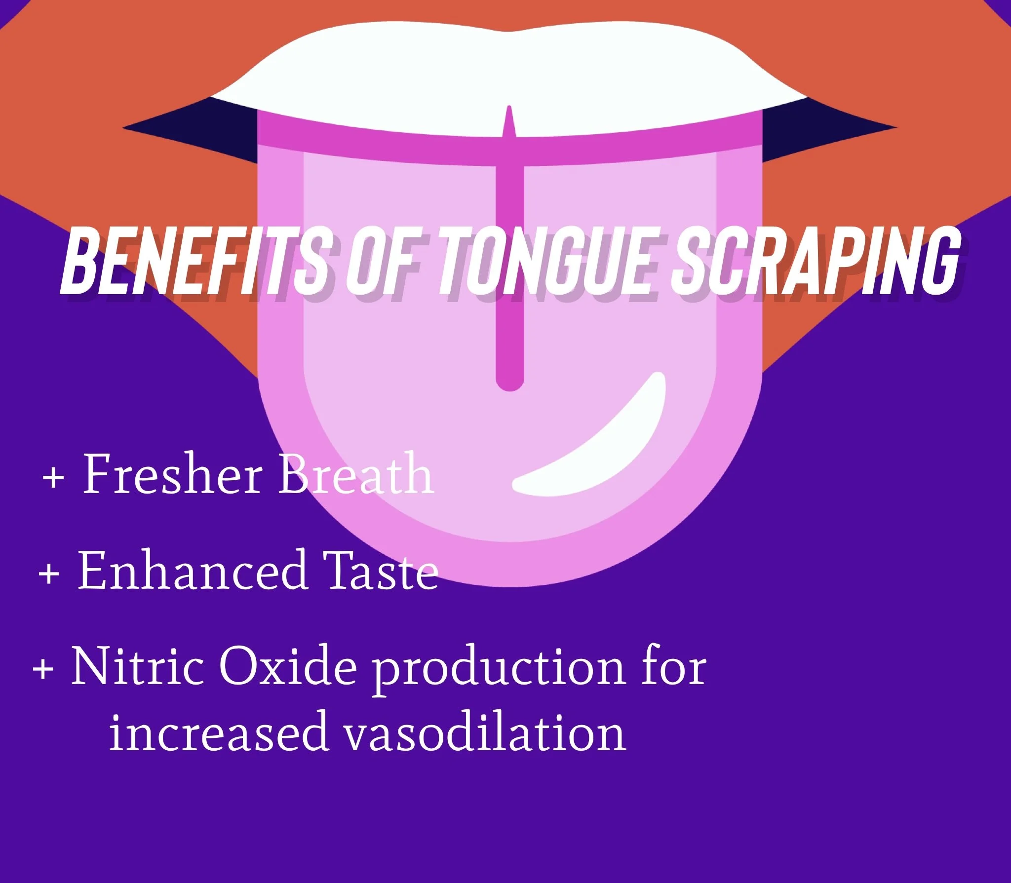 Major Reward - The scraping action stimulate oral bacteria that convert dietary nitrates into nitric oxide (NO), a powerful Vasodilator. Which then causes vasodilation , an opening up of blood vessels to carry more oxygen. That oxygen nourishes the cells and promotes renewal and regeneration.