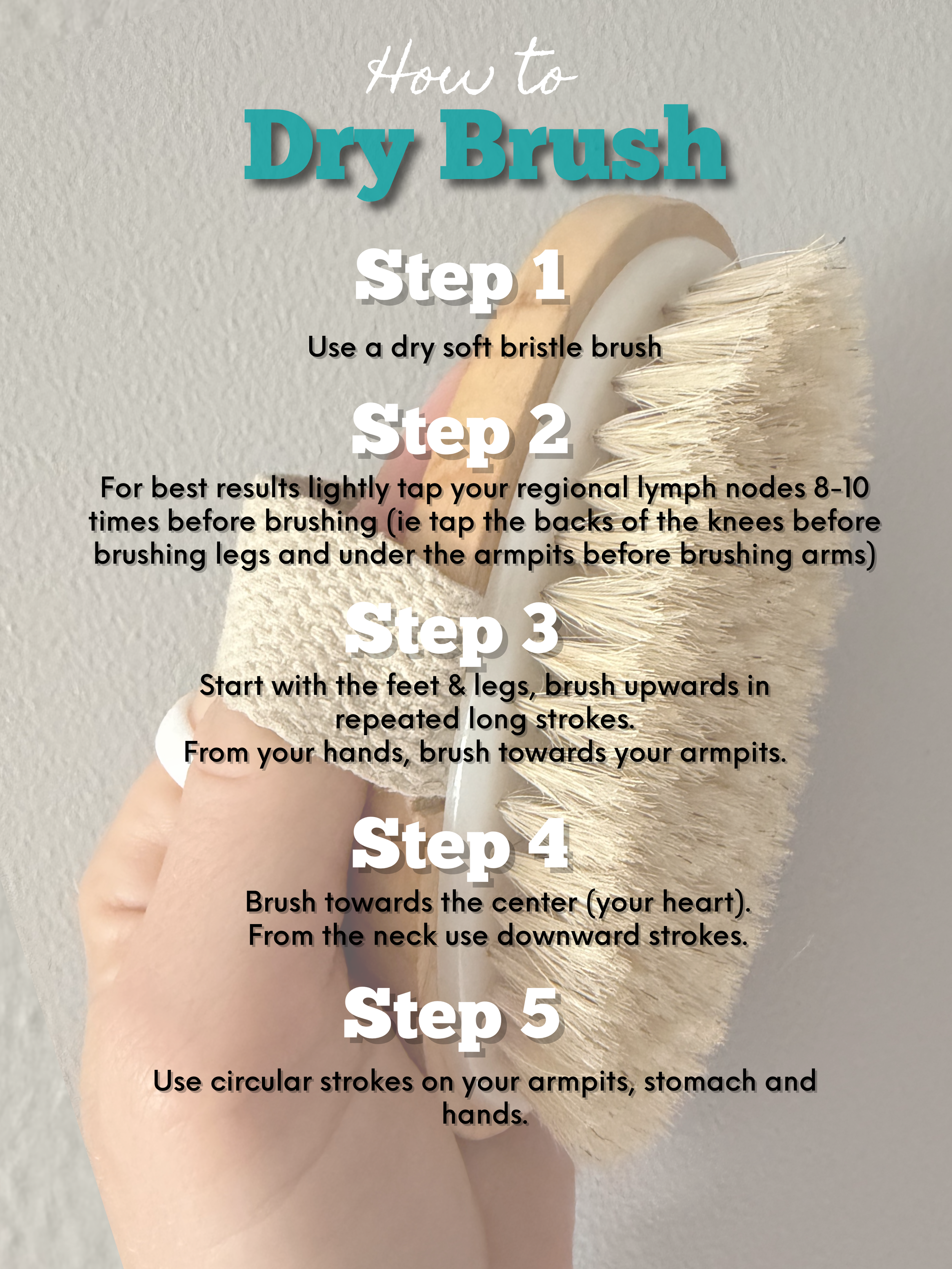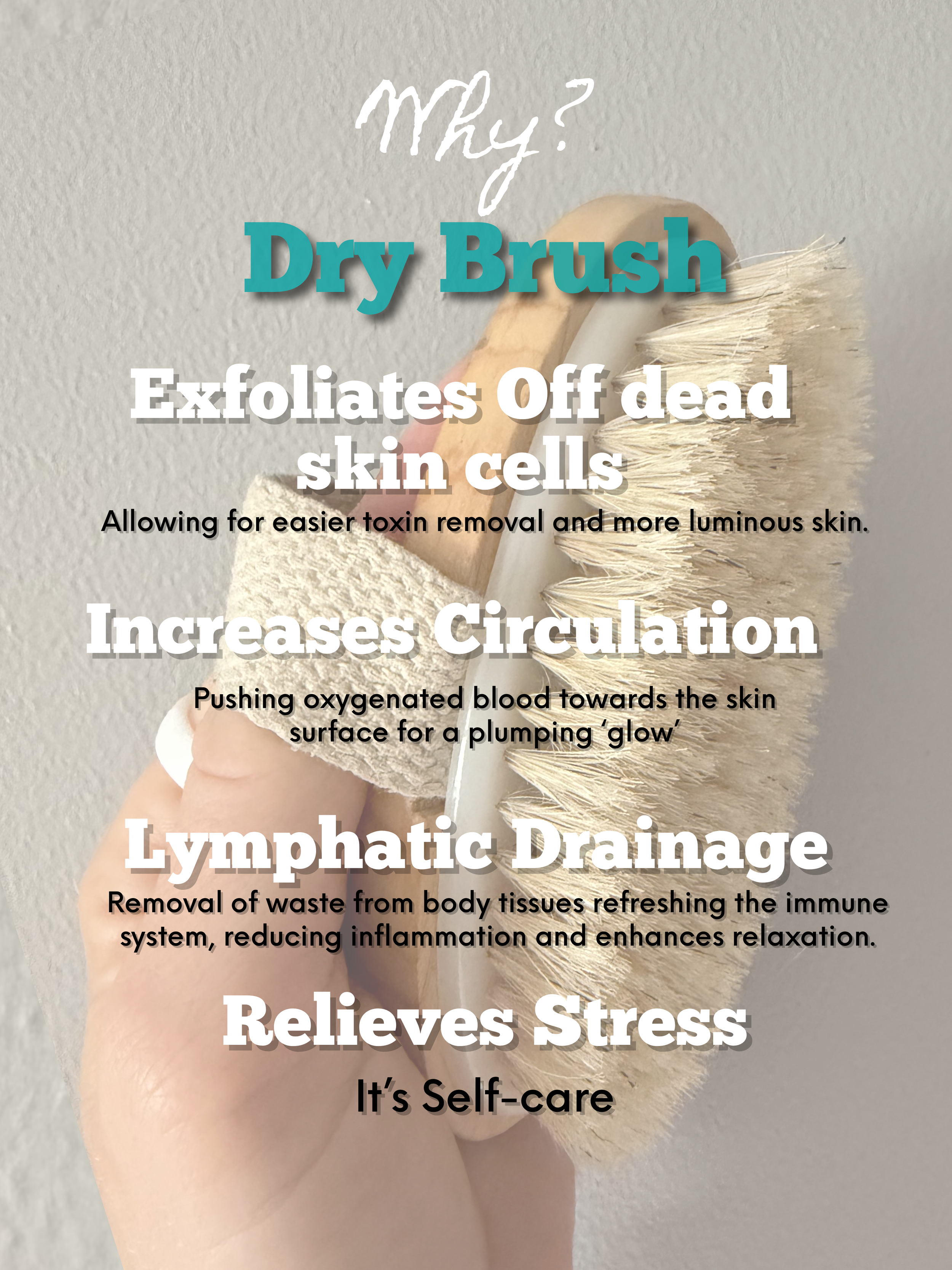 So this physical pressure from the brush bristles encourages "stuck" or stagnant lymph fluid to move through the vessels, aiding in the removal of metabolic waste and toxins. And that’s not all! it also exfoliates (removes) dead skin cells and unclogs pores, making it easier for the body to eliminate waste through sweat, reducing the overall "load" on the internal lymphatic system. Without that dull dead skin layer your skin reveals a soft buttery texture (win!). The friction from the bristles stimulates blood flow (vasodilation), aka boosts circulation which then to reduce puffiness and swelling and induces a vibrant, natural glow (win!). And the vasodilation, supports the lymphatic system's role in delivering oxygen and nutrients to tissues while carrying away debris.