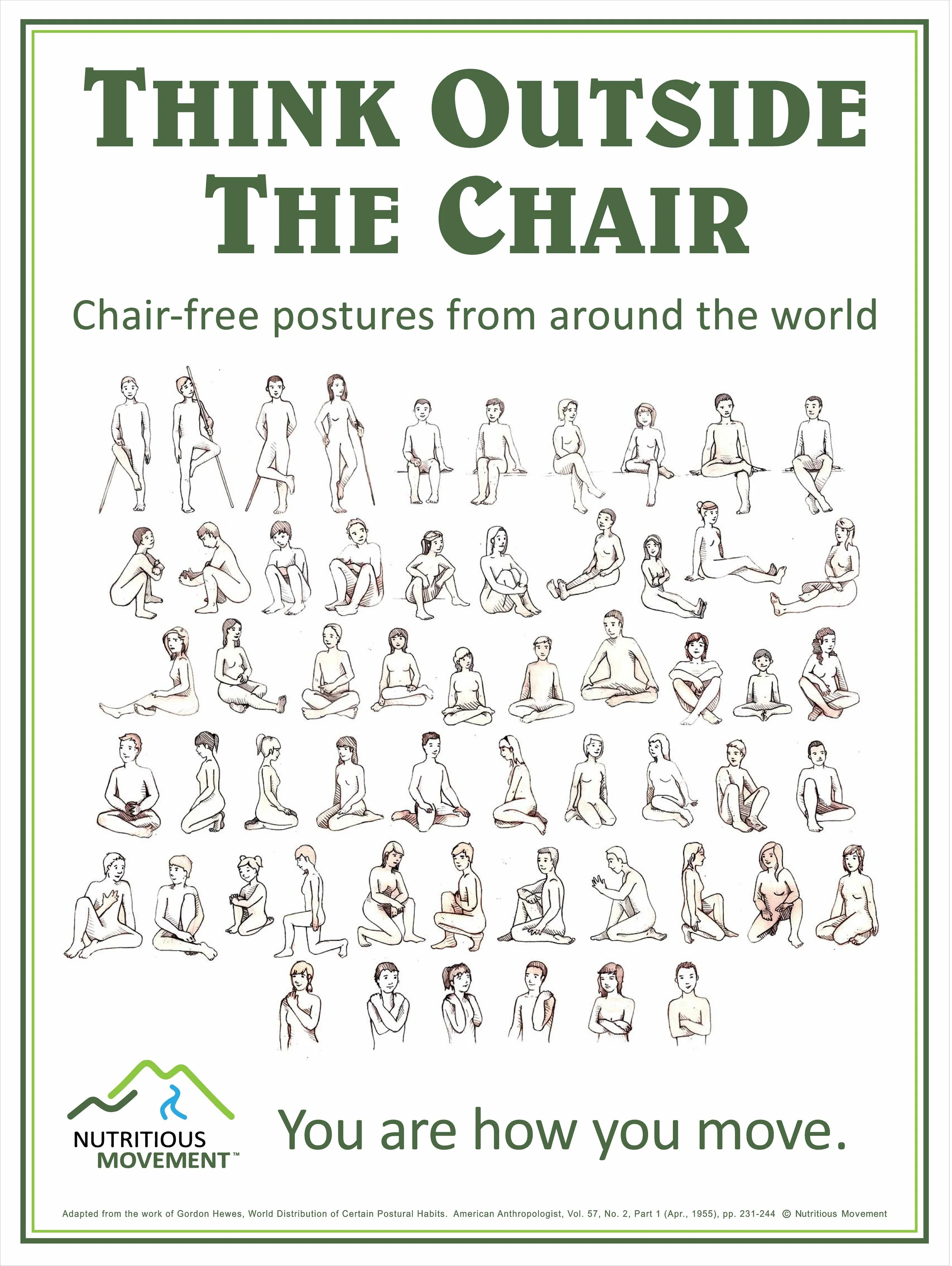 To give a good example, if we are engaging with one movement pattern repeatedly, the body becomes adapt to doing just that one movement, say looking down at an electronic device. The more time we spend engaging with this one movement pattern, the surrounding and converse muscles begin to grow weaker, you begin creating adaptations to conform your body to make that one movement pattern easier, less energy demanding. A nutritious movement here would be to engage in the inverse of the movement, actively stretching your head back and up to counteract the repeated strain. Katy Bowman, expert biomechanist and founder of the Nutritious Movement movement calls this move the Head Ramp and it can be very effective to alleviate against “tech neck.”